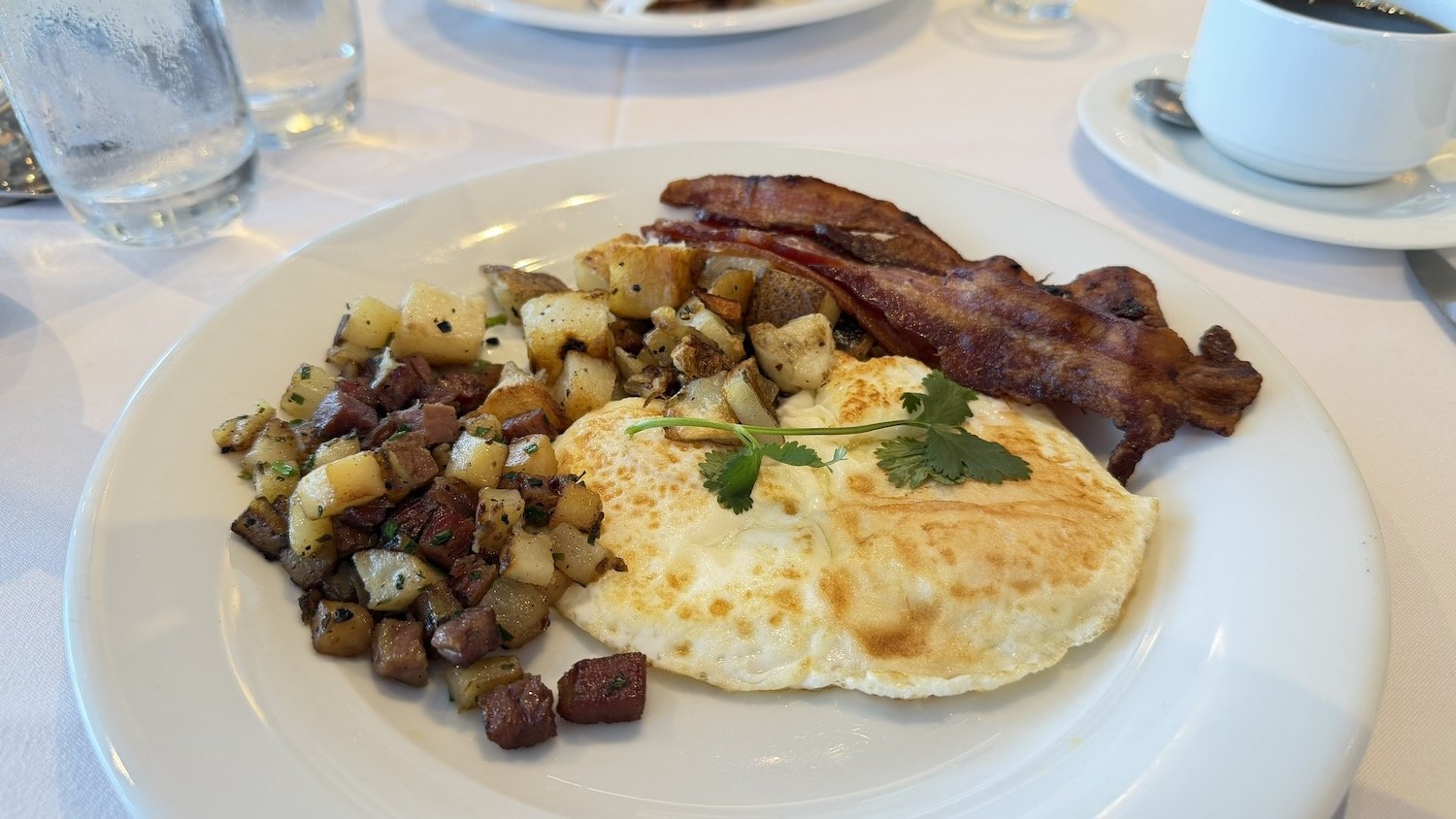Our day begins with breakfast at Hudson’s, one of the ship’s main dining rooms. The service was much better today than on embarkation. There seemed to be plenty of staff and food was coming out of the galley quickly.