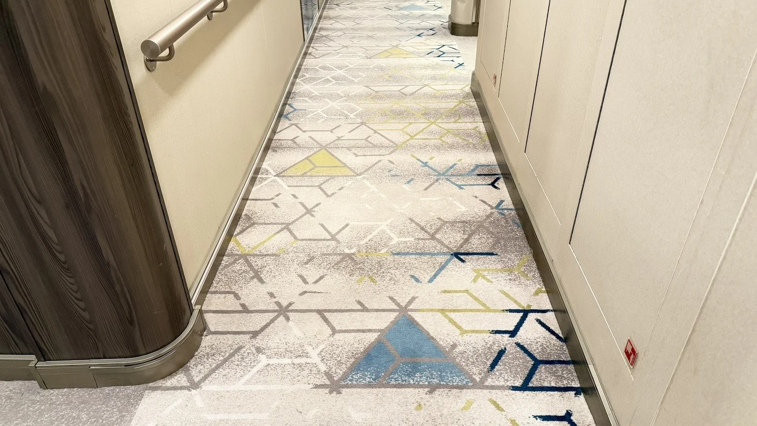 On our way back to the stateroom, we took notice of how NCL has had colorful arrows woven into the hallway carpeting to point out the direction to the front of the ship.