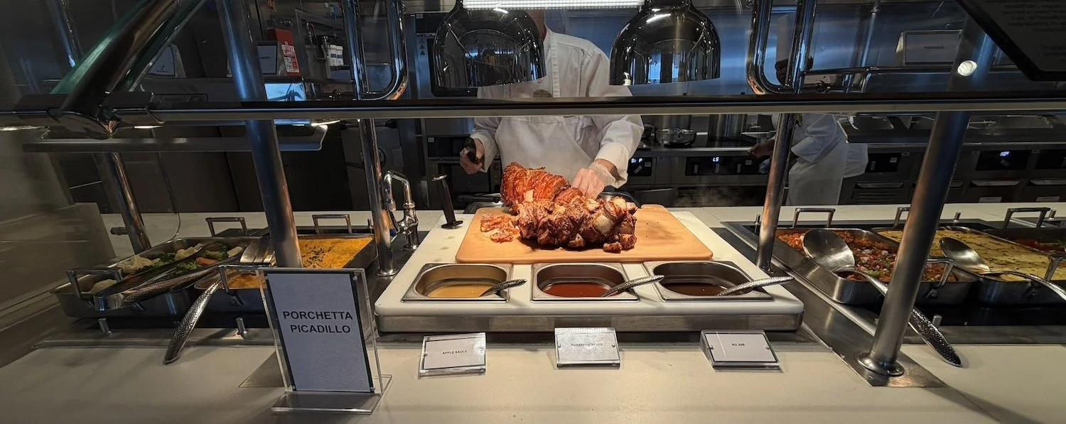 This buffet is smaller than what you might find on comparable-sized ships, probably because there are so many other dining venues such as Indulge Food Hall. In spite of its size, Surfside offers a lot of variety.