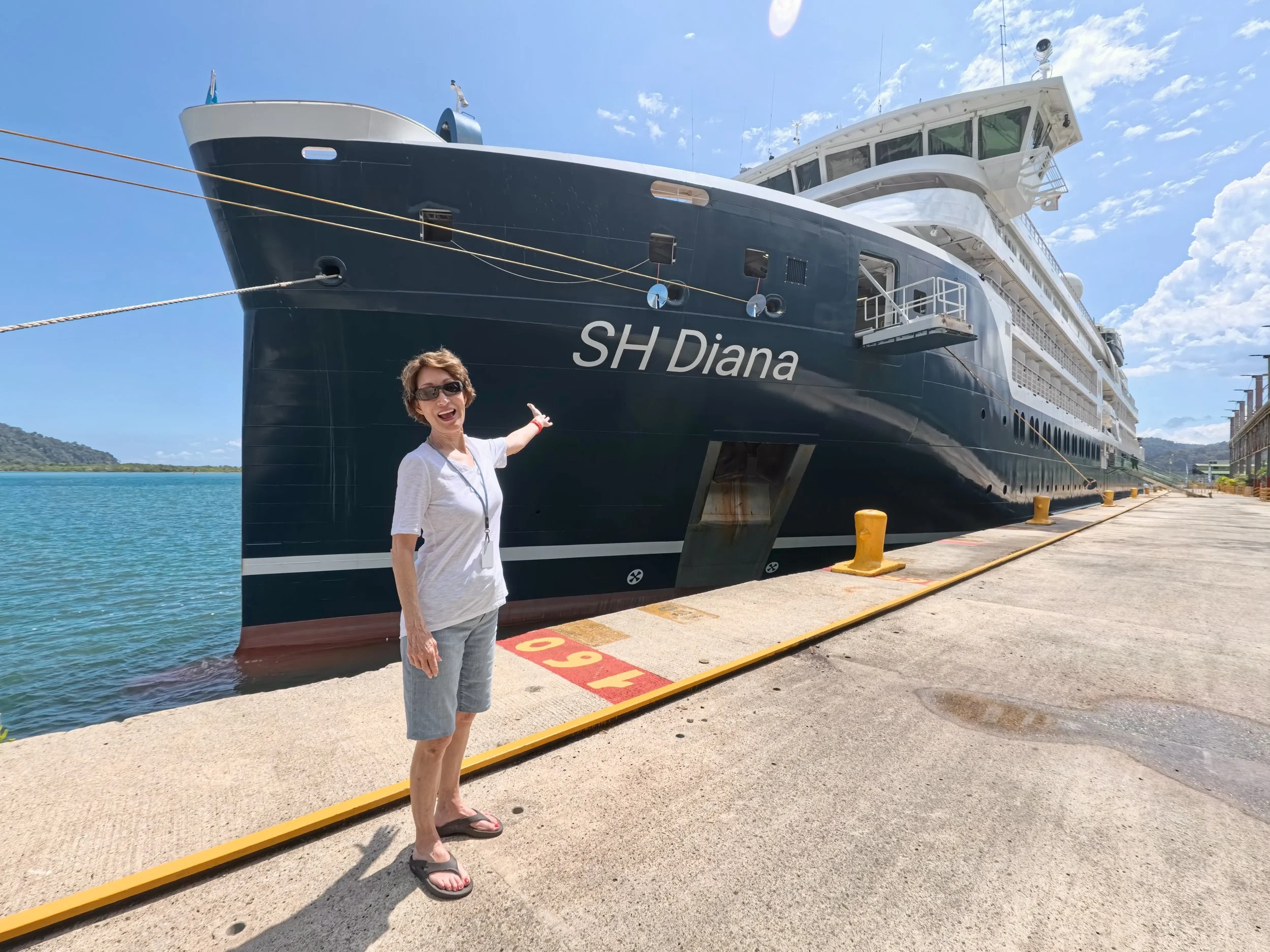 SH Vega is one of two identical sister ships in the Swan Hellenic fleet, with SH Minerva being the first ship in the fleet. SH Diana is the third ship in the fleet and is slightly larger, but looks nearly identical to the other two ships, both inside and out. She is just a bit longer and has a few more staterooms and a larger spa. We sailed on SH Diana through the Panama Canal in 2024.