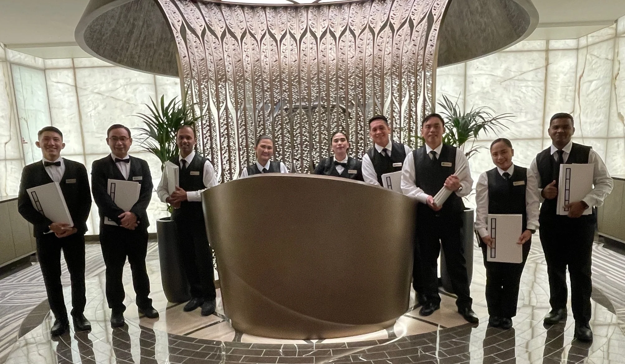 Compass Rose entrance. Waiters ready to escort guests to tables