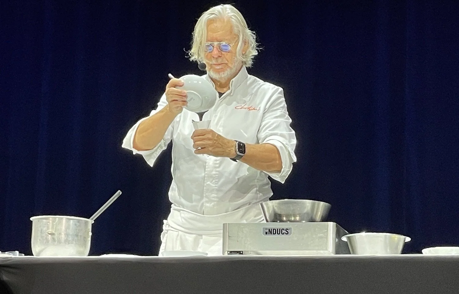 Guest Chef Christopher Gross prepares his chocolate dessert
