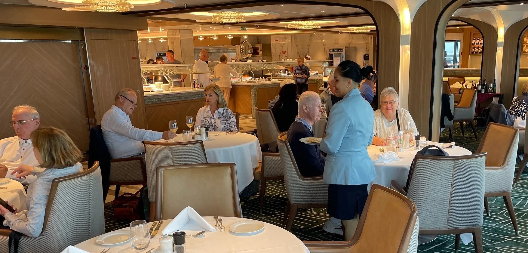 On Deck 2 aft, you will find The Restaurant, which is the largest dining venue on the ship. The Restaurant is open for breakfast, lunch on sea days and dinner every day. We had dinner here one evening and were very impressed with the service and the food. I would say that the meal we had was as good as any main dining meal on any cruise ship and better than most. On my Viking Orion cruise they were requiring reservations to dine at The Restaurant but not on this cruise. The Restaurant is now considered one of the “Casual” dining options.