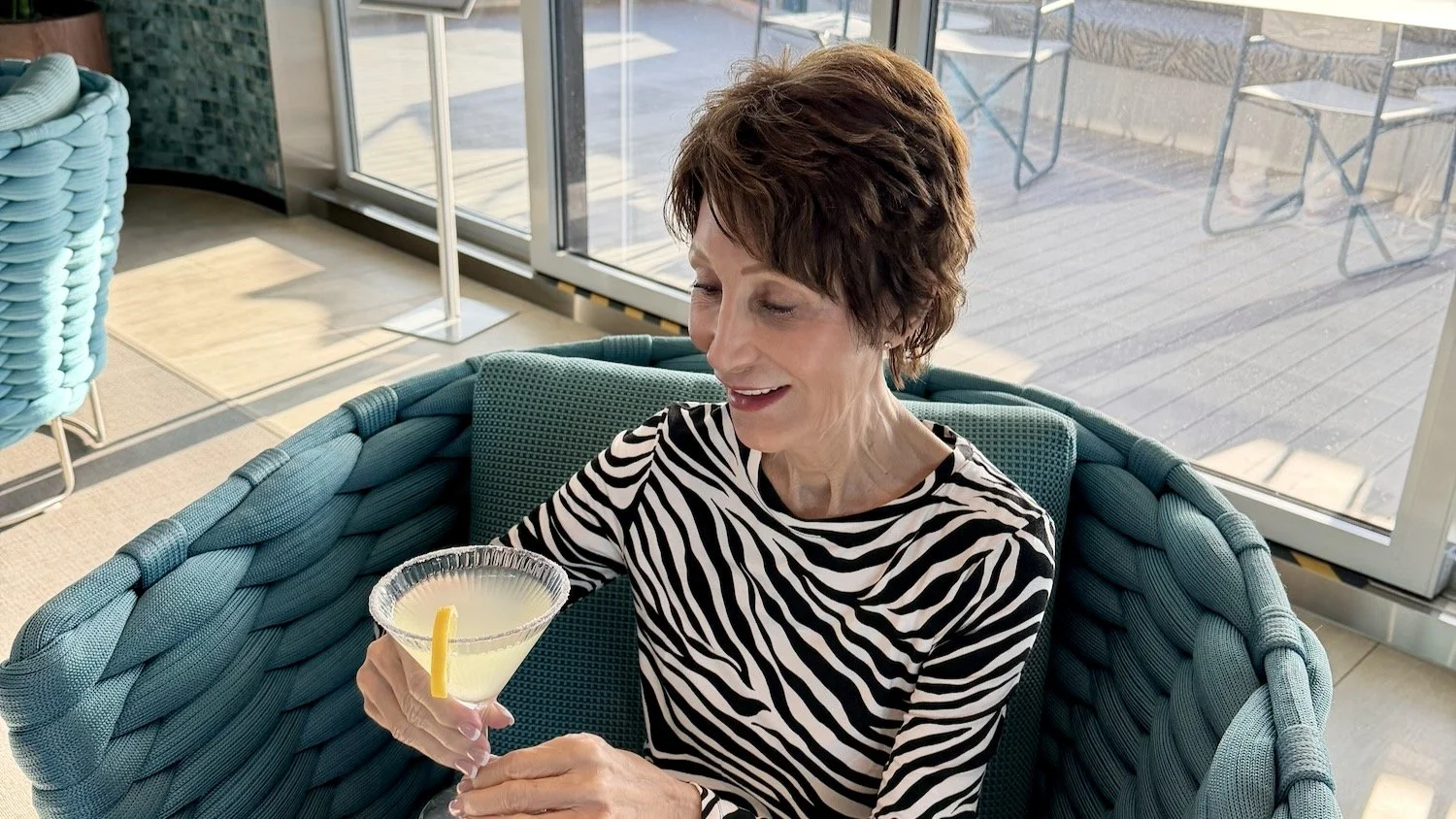 At 6pm, we were invited to enjoy a drink with our journalist friends, and our host(ess), Alexa, on Deck 7 at the Sky Bar. This small venue offers indoor and outdoor seating. Sky Bar is smaller than the main bar located in the Lounge on Deck 3. I was disappointed to learn that there was no Crown Royal stocked at the Sky Bar. But, one great thing about a 128-guest yacht, it only takes a couple of minutes to go down to Deck 3, get my favorite drink and get back to Deck 7. You can literally get anywhere on the yacht in just a few minutes. Rickee, of course, had to try their Lemon Drop Martini, which she claimed passed the test with flying colors.