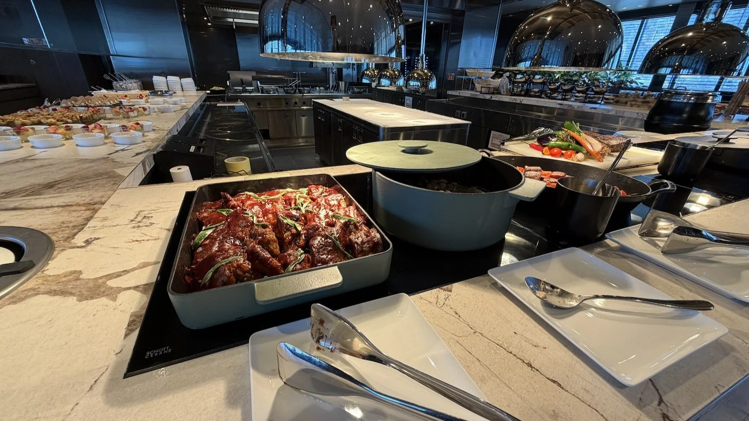 While the buffet offerings are not as expansive as you will find on larger cruise ships, the food on offer instantly appears to be elevated from what you typically find on a “cruise ship” buffet. Today’s buffet offered BBQ pork ribs, grilled beef sirloin, grilled Mahi Mahi, a chicken dish that I cannot describe other than it was delicious, tempura vegetables, steamed vegetables and rice.