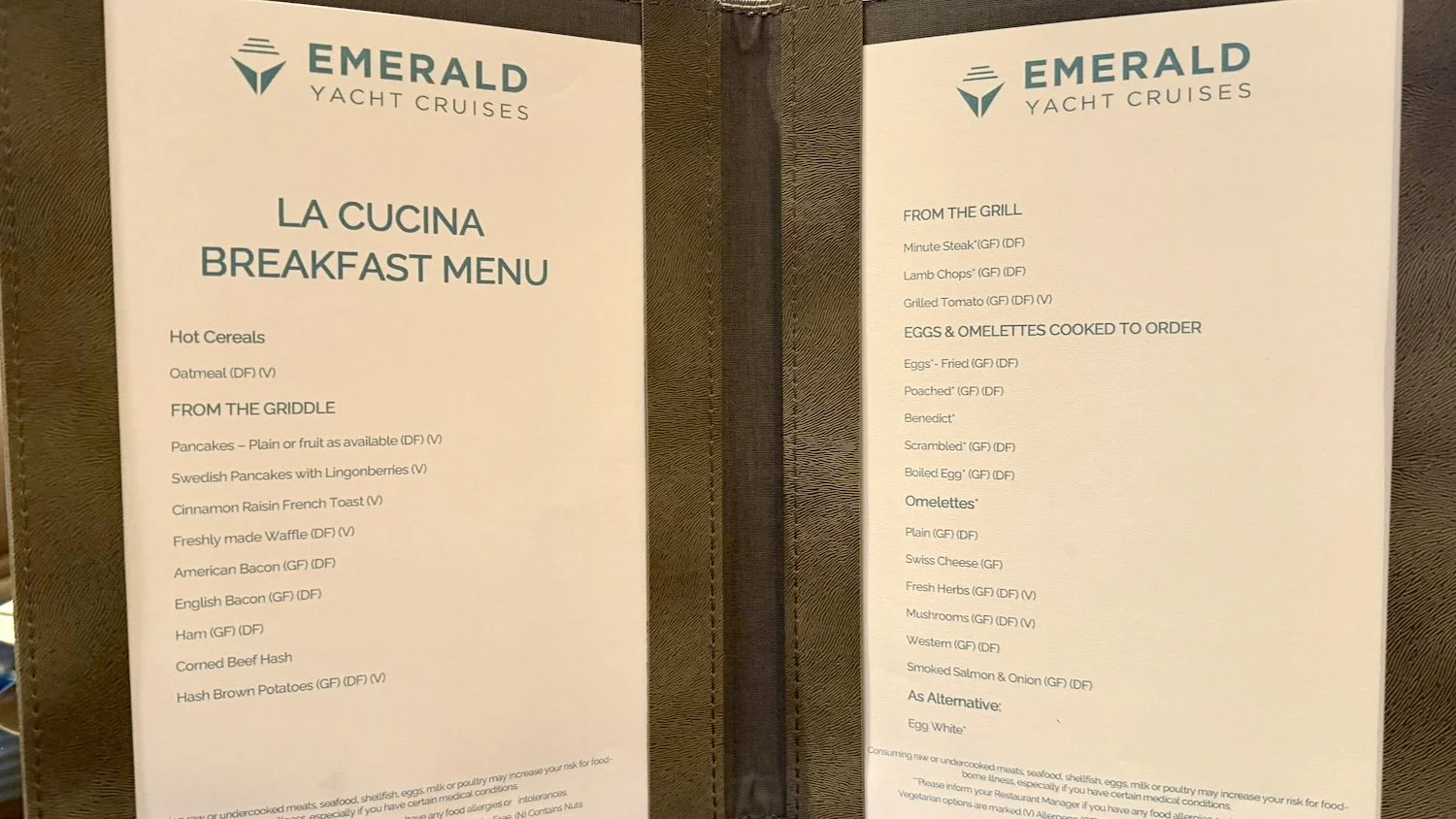 Breakfast is the most important meal of the day, or so we have been told. In spite of that declaration, I have never been much of a breakfast eater. That said, even I was lured in by the impressive breakfast offerings on Emerald Kaia. There is an extensive menu of made-to-order items.