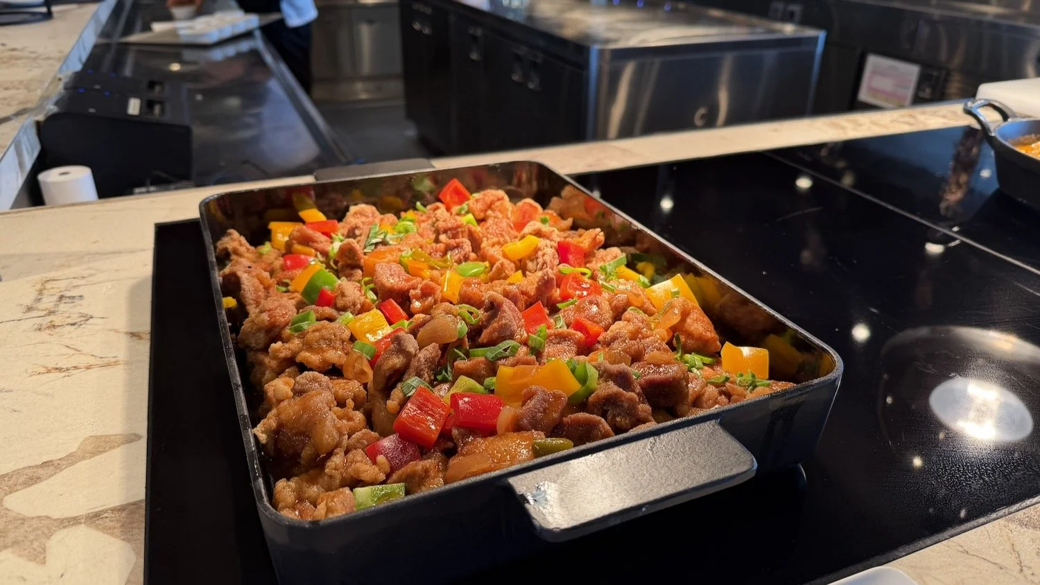 For lunch today, Rickee and I decided to enjoy the buffet at La Cucina. Once again, the galley team manages to impress with a selection of delicious entrees, salads, breads and desserts. I enjoyed the Sweet & Sour pork with the Chinese Fried Rice.