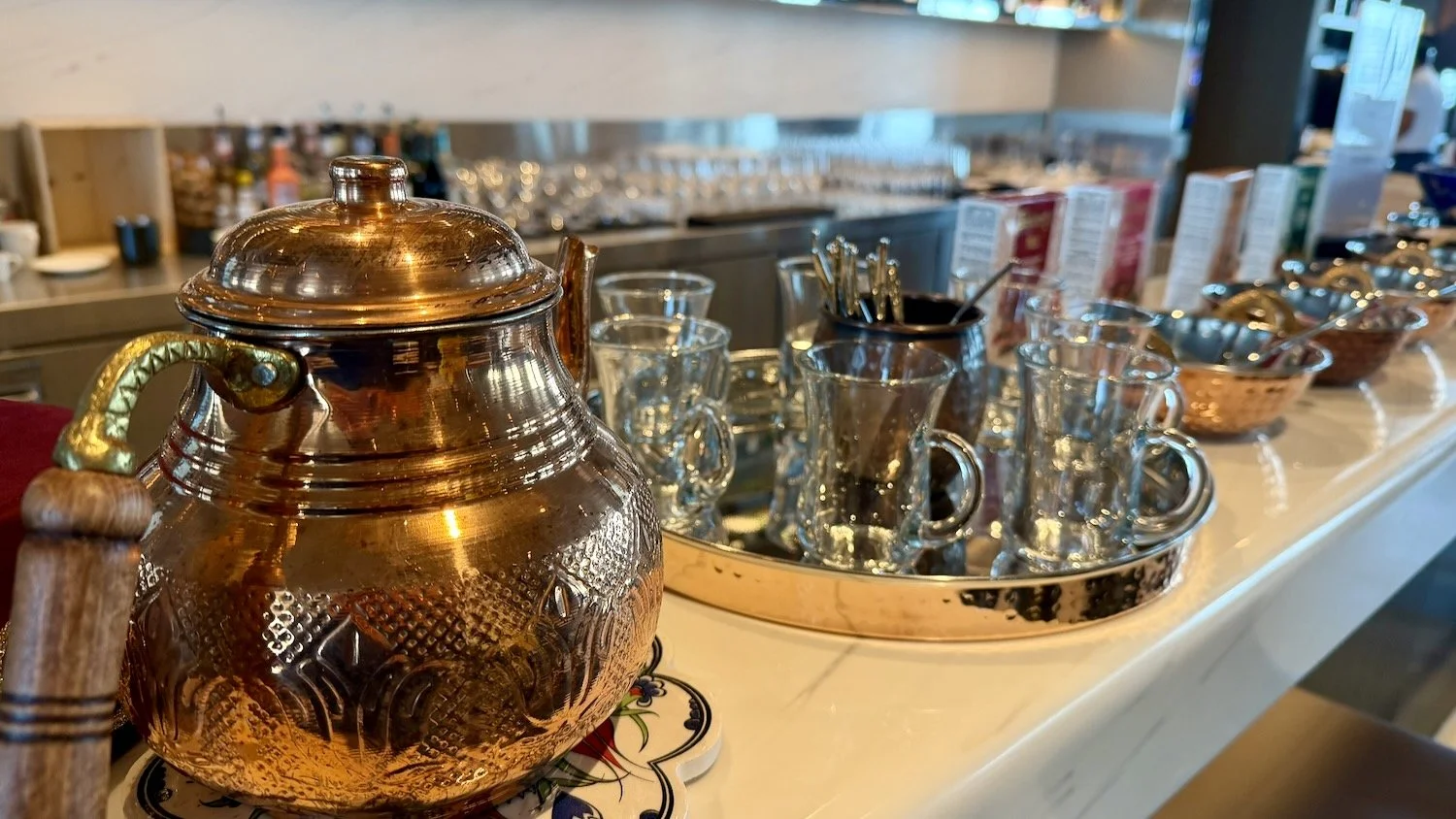 Once back onboard Emerald Kaia, we have been invited to the Bridge to observe the ship sail away from Kepez. A quick look in the Lounge reveals a very elaborate afternoon tea with a variety of Turkish teas on offer.