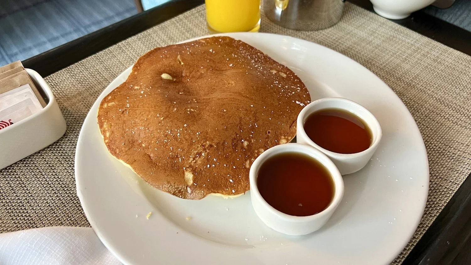 I ordered a ham and cheese omelette and Rickee ordered the pancake with extra syrup. My omelette was cooked nicely and Rickee’s pancake was huge. All of the food was served warm and overall was very good. The coffee was especially good.