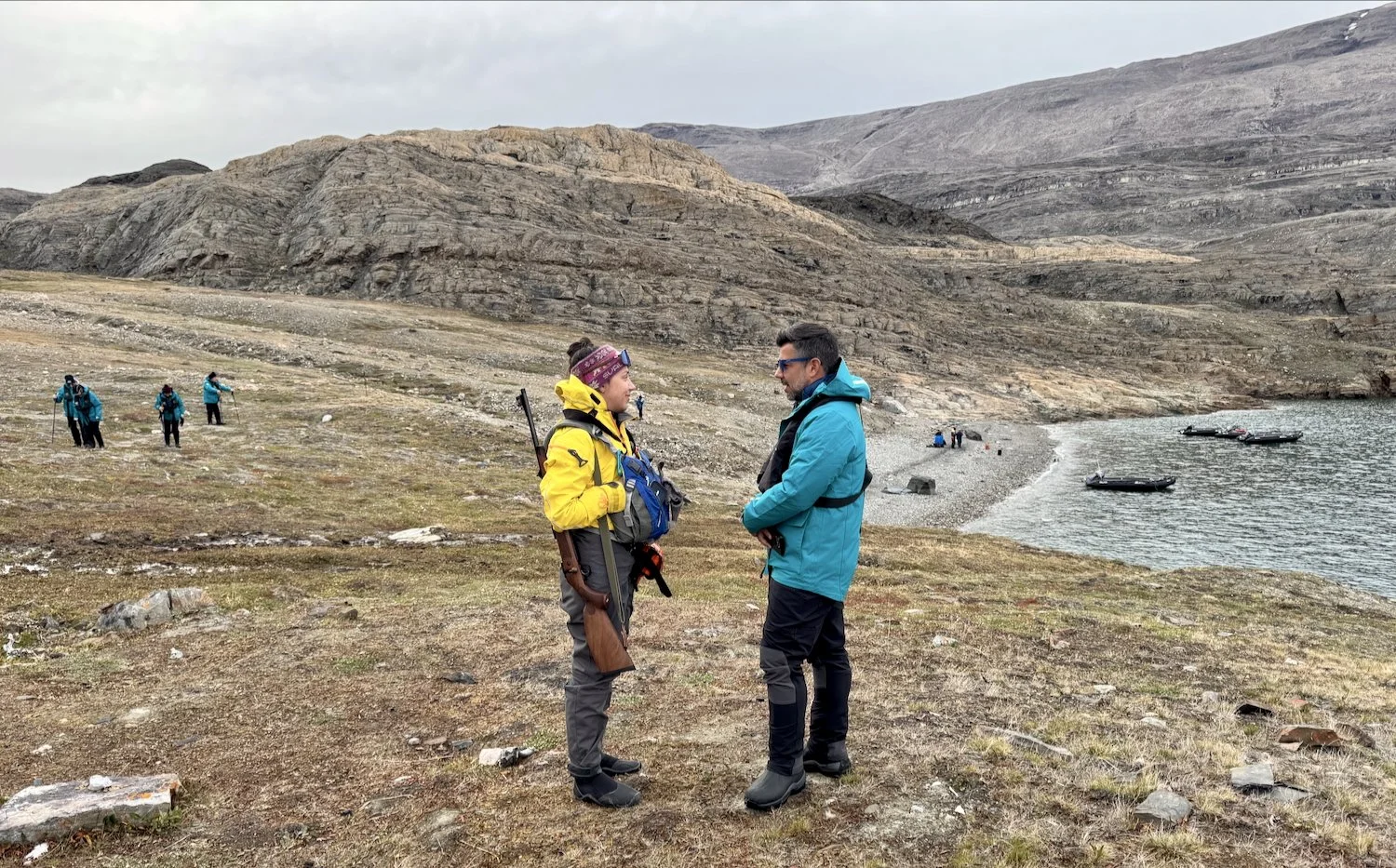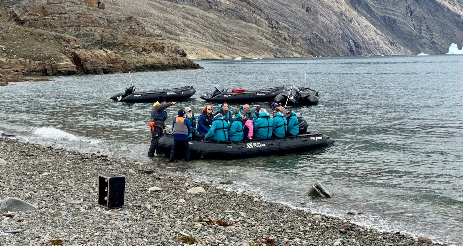 This afternoon, we make a second Zodiac landing on the island of Ella Ø. Our Zodiac is met by Excursion Leader, Nicki D’Souza, who once again warns guests not to stray to the left side of the beach where a military installation is located.