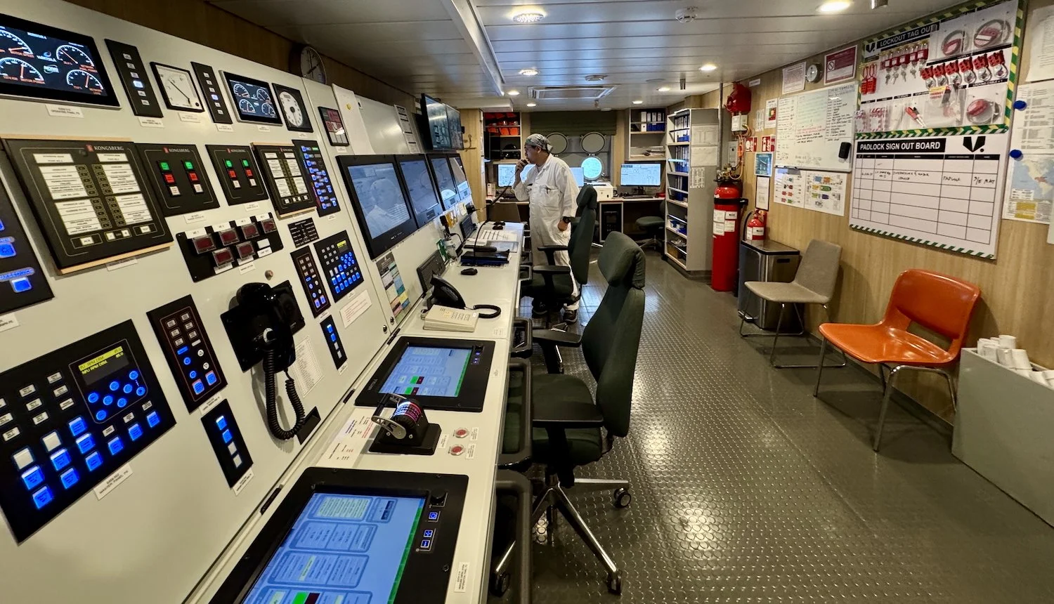 After lunch, we are invited to tour the Engine Control Room on Deck 3. Chief Engineer, Anatoliy Popadyuk, from Ukraine, explains the various systems that power the vessel.
