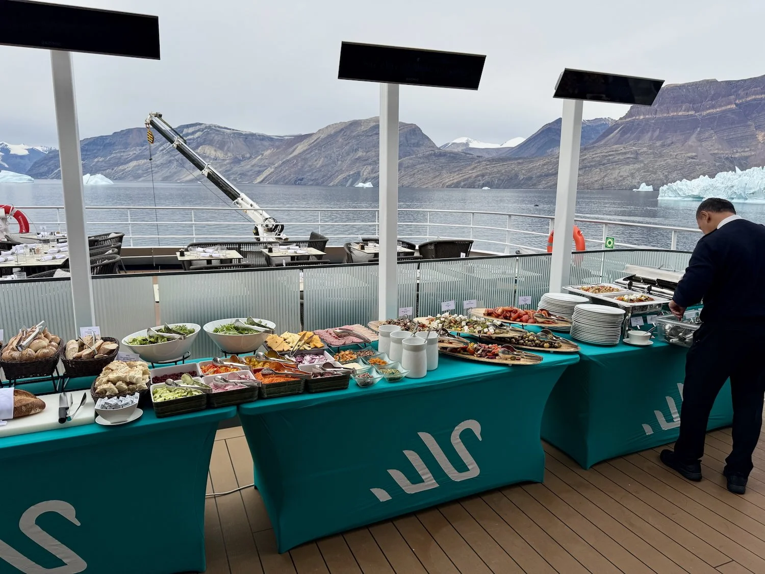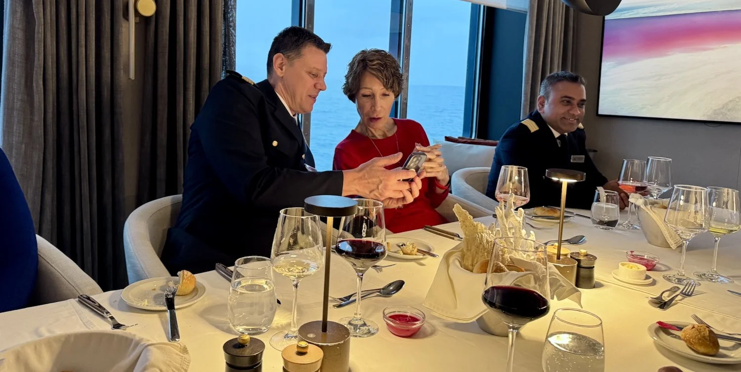 We are joined by a handful of other guests, Staff Captain, Artur Yevhenovych, and Hotel Director, Ferdinand Fernandes. Rickee was seated next to the Captain and he took the time to show her some photos he took of the Northern Lights. Captain Garciyanov is one of the most personable, and approachable Captains we have ever sailed with. In fact, everyone on the Senior Staff is very approachable.