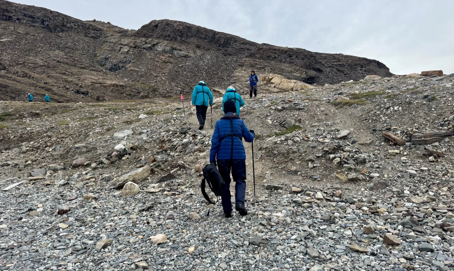 At 10am, we board the Zodiacs for the short ride over to Blomsterbugt. You may notice that Rickee has removed the quilted liner from her parka as it is much warmer today. We plan on taking these liners home with us.