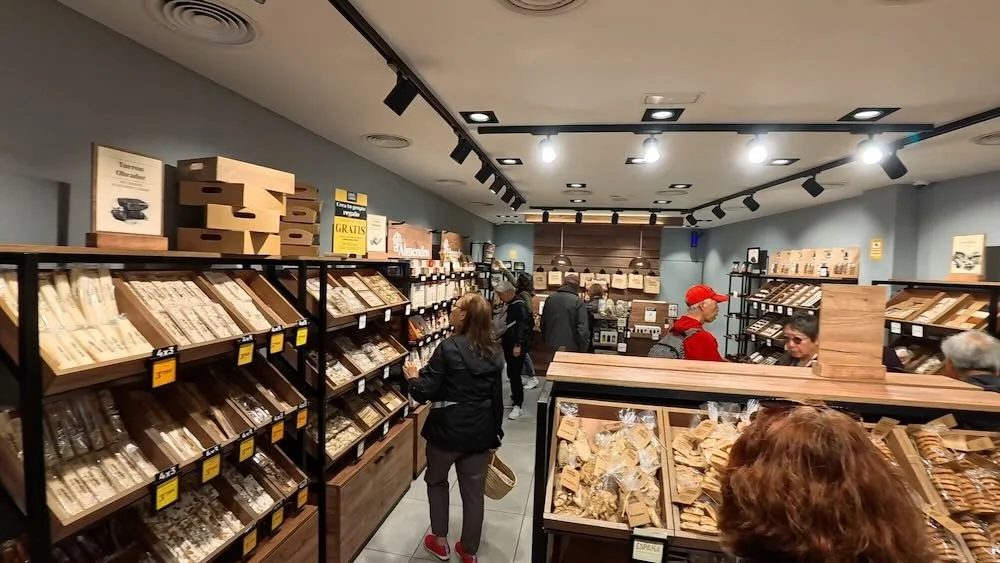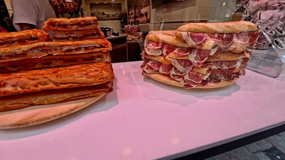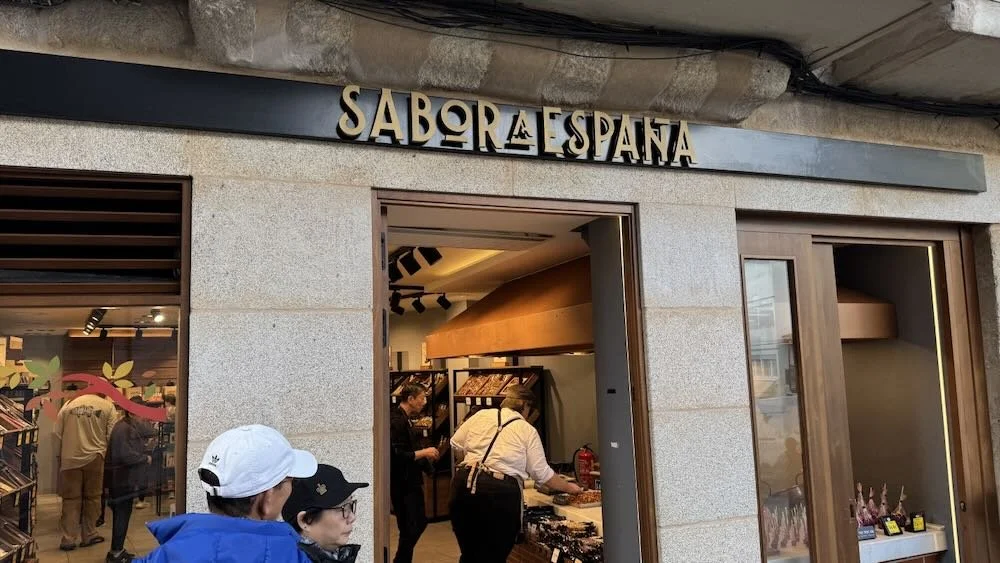 Just look at the ham sandwiches displayed in the window. If we did not have reservations at The Chef’s Table tonight, I would have bought one of these to eat as we walked around town. I did purchase a pack of Iberico ham to take back to our stateroom to enjoy later.