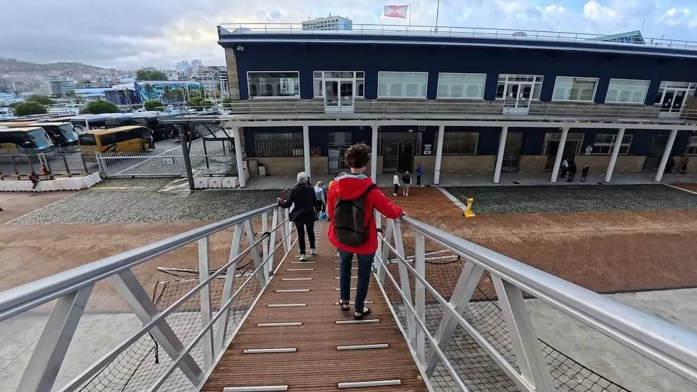 He dropped us off right in front of the cruise terminal building. The cost was only 10€ for the ride and it was worth that price just for this story!