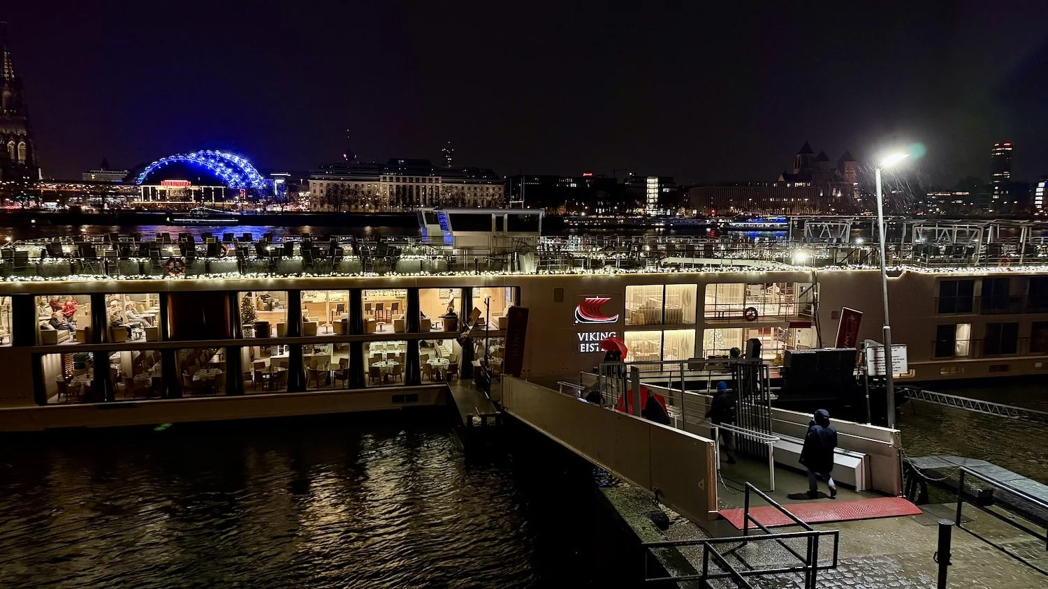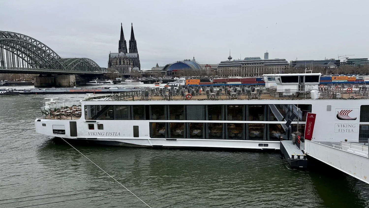 Viking Eistla docked next to train bridge in Cologne