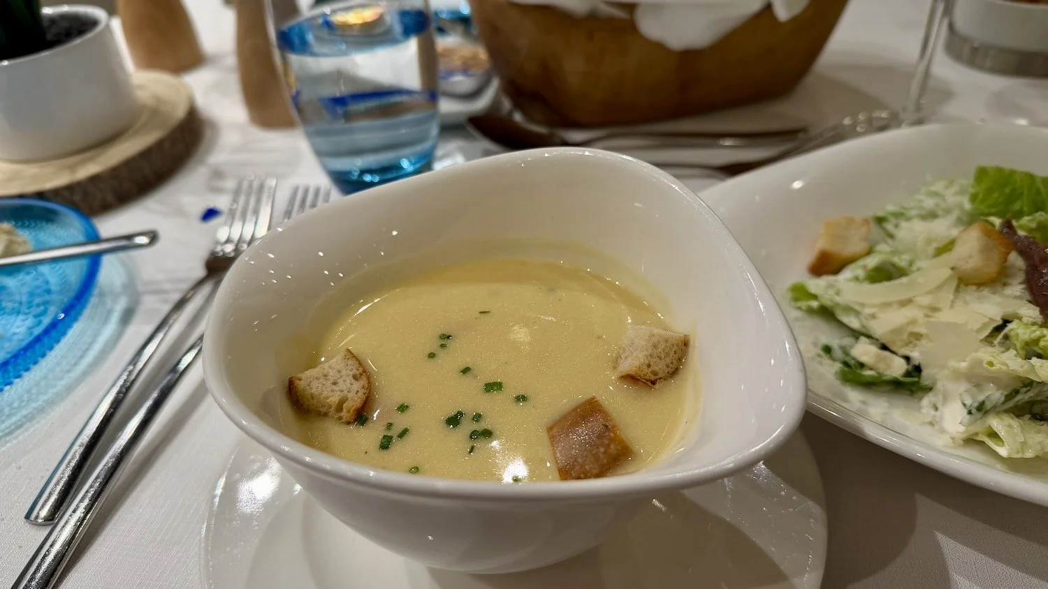 For dinner this evening, we found a nice table for two at Aquavit Terrace. We each ordered the Cheese soup and I ordered a Caesar Salad.