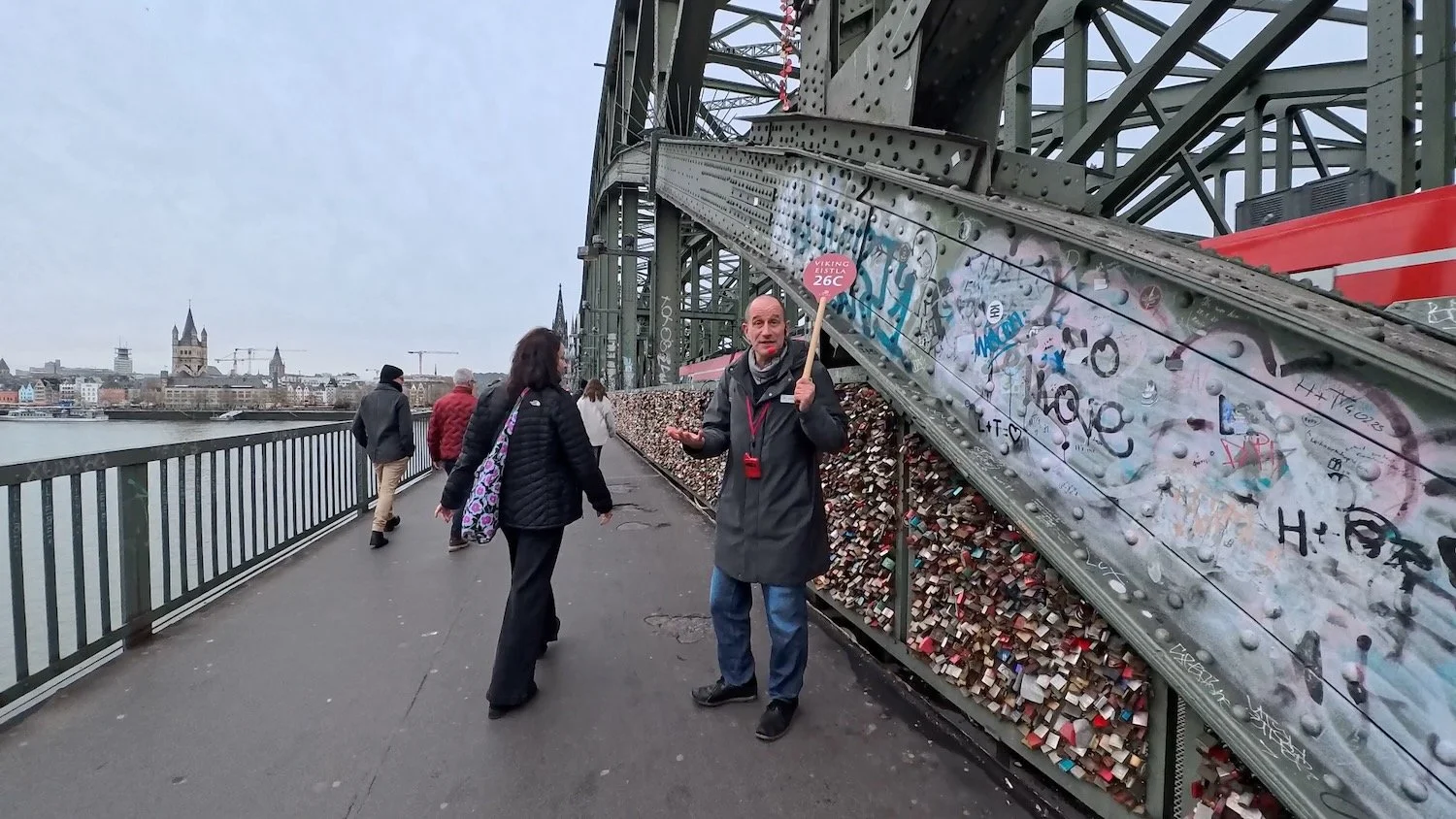 This afternoon, Viking Eistla is docked on the east bank of the Rhine River in Cologne, Germany. Fortunately, Eistla is docked within easy walking distance of Hohenzollern Bridge, a massive railway bridge which also has a pedestrian walkway leading into the heart of the city.