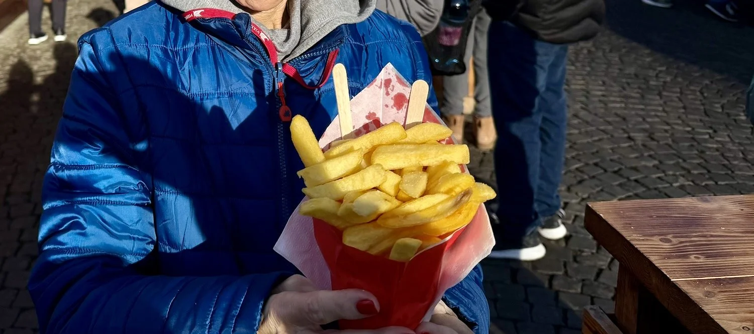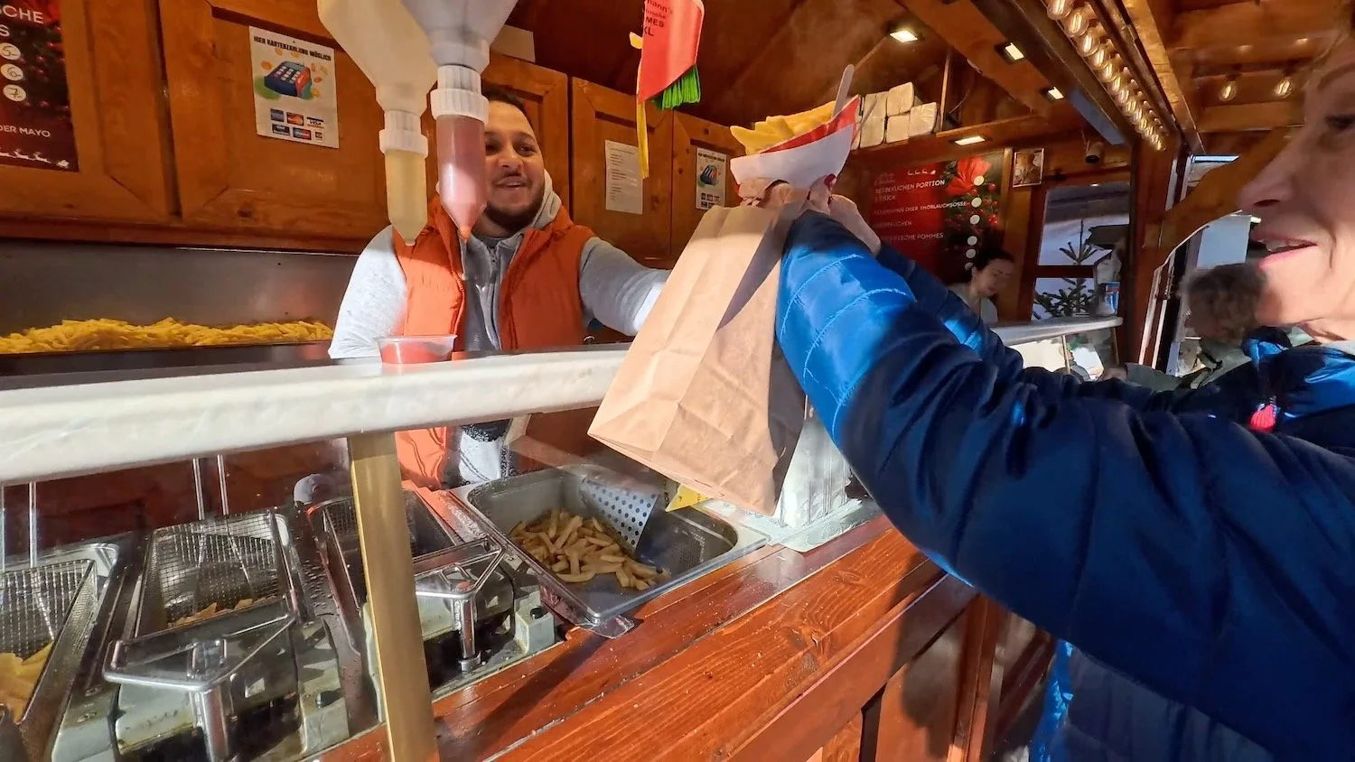 We could not resist sharing an order of fresh French Fries from another vendor. Each order is prepared fresh and they were piping hot. We got a huge cone of fries for 6€ and it was more than we could eat.
