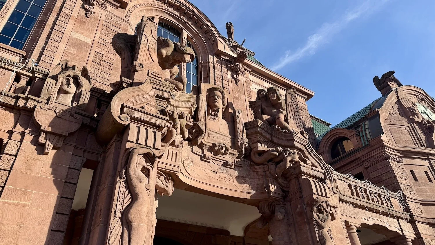 The bus dropped us off at the famous Mannheim Rosengarten concert hall with the faces of Mozart and Beethoven carved into its upper facade.
