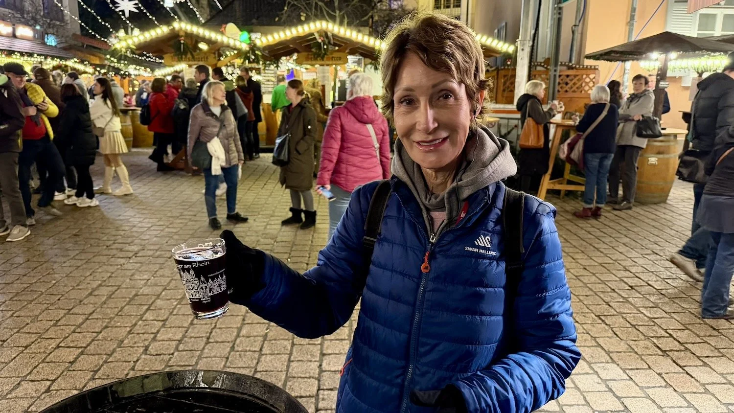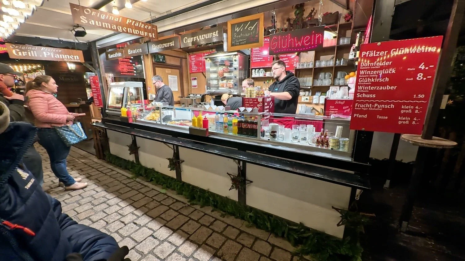 You can’t visit a Christmas market without trying at least one mug of Glühwein, so Rickee and I decided to share a mug. I am not a big fan of Glühwein. To me, it tastes like warm cough medicine. Our mug of Glühwein cost 8€ (about $9.60 US) which includes the mug. Here’s a little known tip; if you don’t want to keep the mug, you can return it and receive a couple of Euro back!