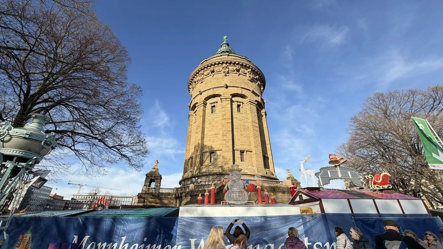 The Christmas Market in Mannheim is located next to the water tower and is a fraction of the size of the Christmas Market in Cologne. Our first objective was to find an ATM so that I can get more Euro. Our guide pointed out a Deutsche Bank across the street, so we headed to the bank to get cash. We walked into the lobby and found 10 ATMs, all very modern. However, they were all in German language. There was no option to choose English or any other language. I have never seen this before in all our travels. I inserted my debit card expecting to get a screen asking if I wanted to choose another language, but just got more screens in German. Fortunately, the physical buttons were colored and I knew red meant to cancel, so I pressed it and my card popped out.